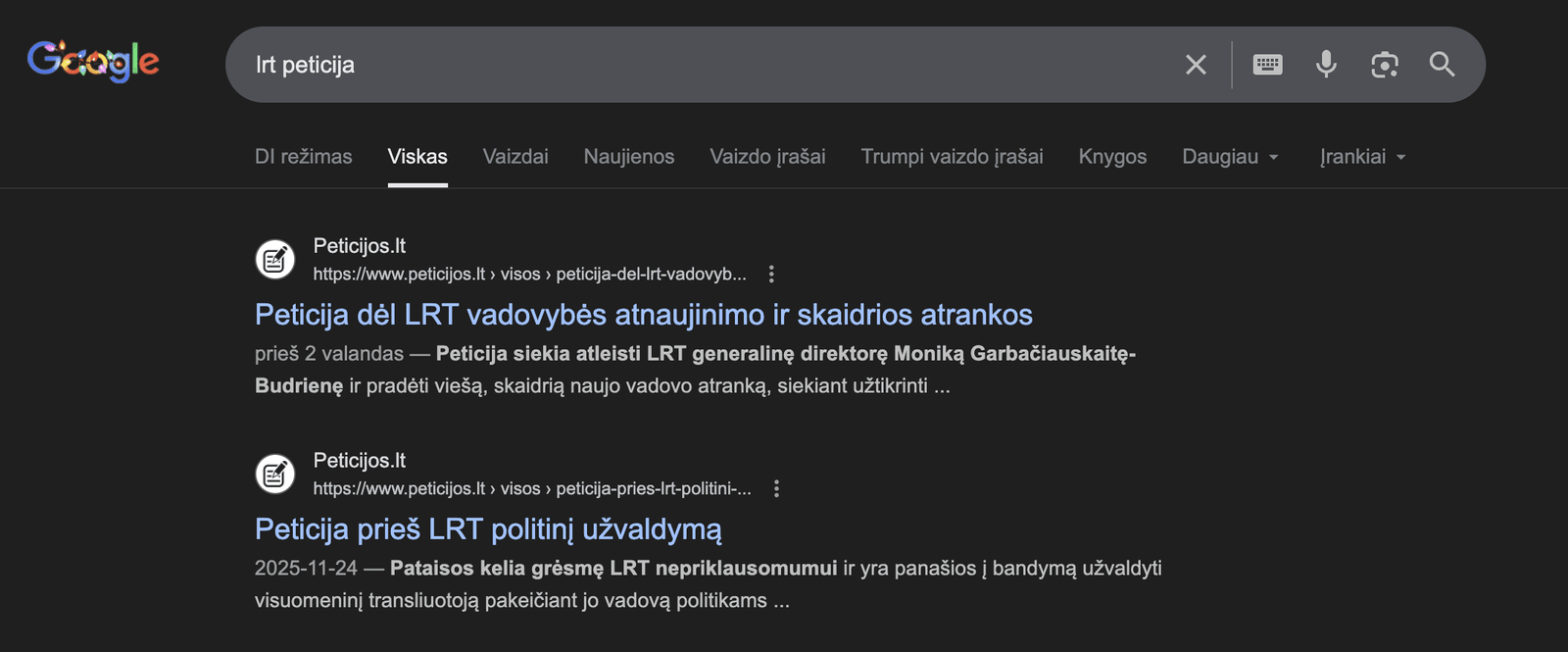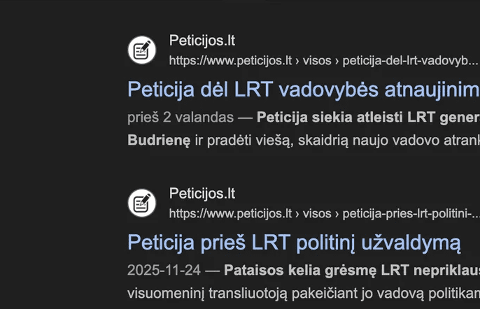 Pradžia » Straipsniai » Kodėl mažiau populiari LRT peticija iškilo Google paieškoje?